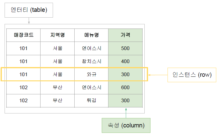 - 업무에서 필요한 인스턴스에서 관리하고자 하는 의미상 더 이상 분리되지 않는 최소의 데이터 단위